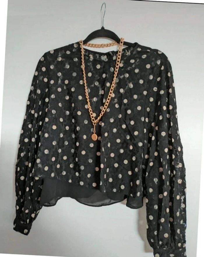 Blouse imprimé pois et dentelles en transparence - photo numéro 1