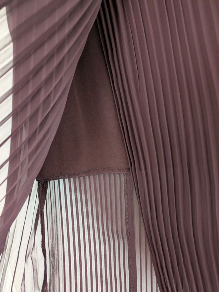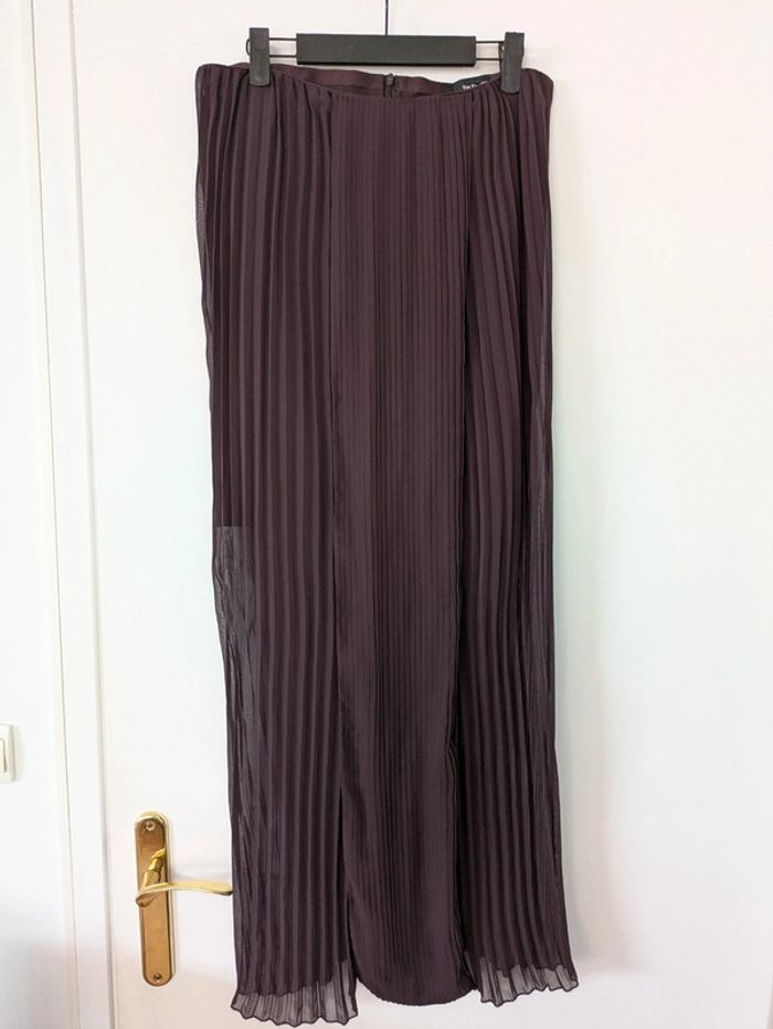 Jupe longeur midi Matière plissée En voile transparente sur la moitié de la jambe Fermeture éclair Taille haute Taille L équivaut un 40