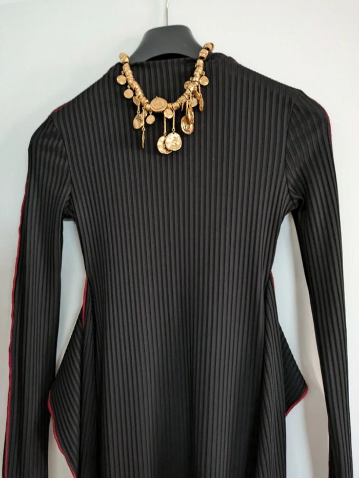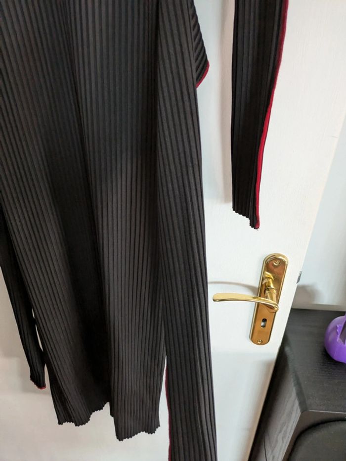 Magnifique robe longue midi Maille côtelée Nervures contrastantes rouges sur les manches et les côtes de la robe Ceinture intégrée Sublime Demandez pour des photos portées