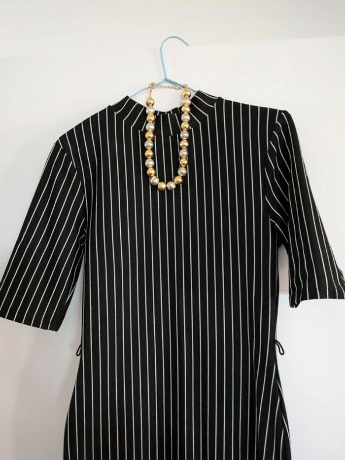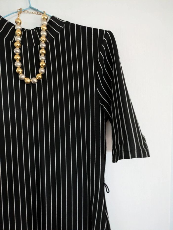 Magnifique robe longueur midi Moulante Fines rayures verticales Manches 2/3 Demandez pour des photos portées