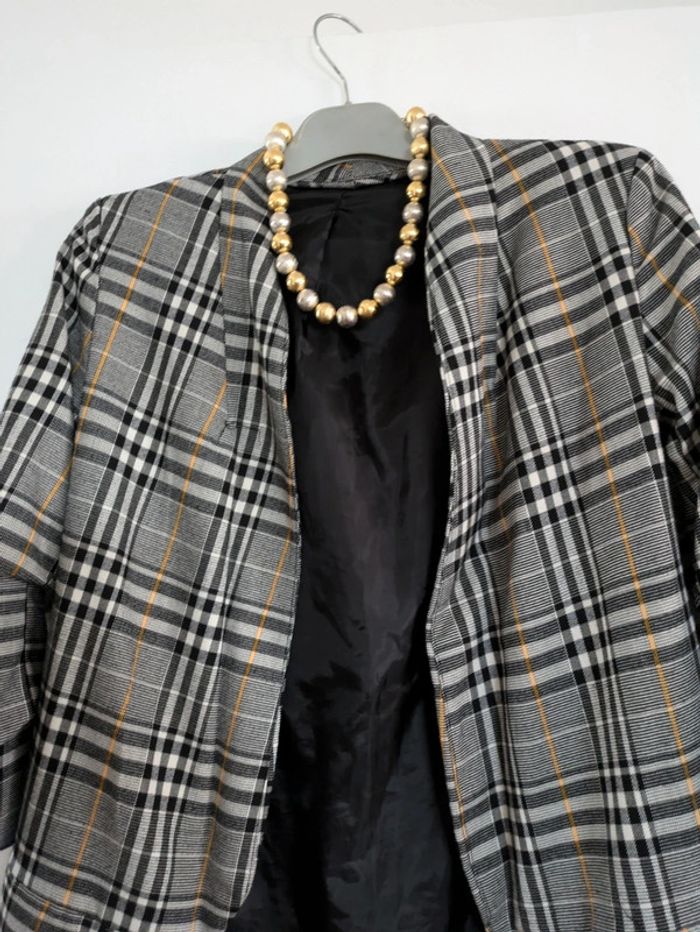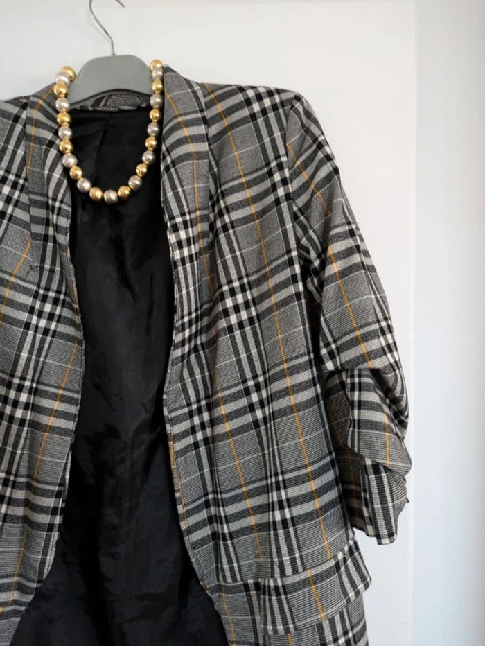 Veste blazer a carreaux manches 3 quarts - photo numéro 3