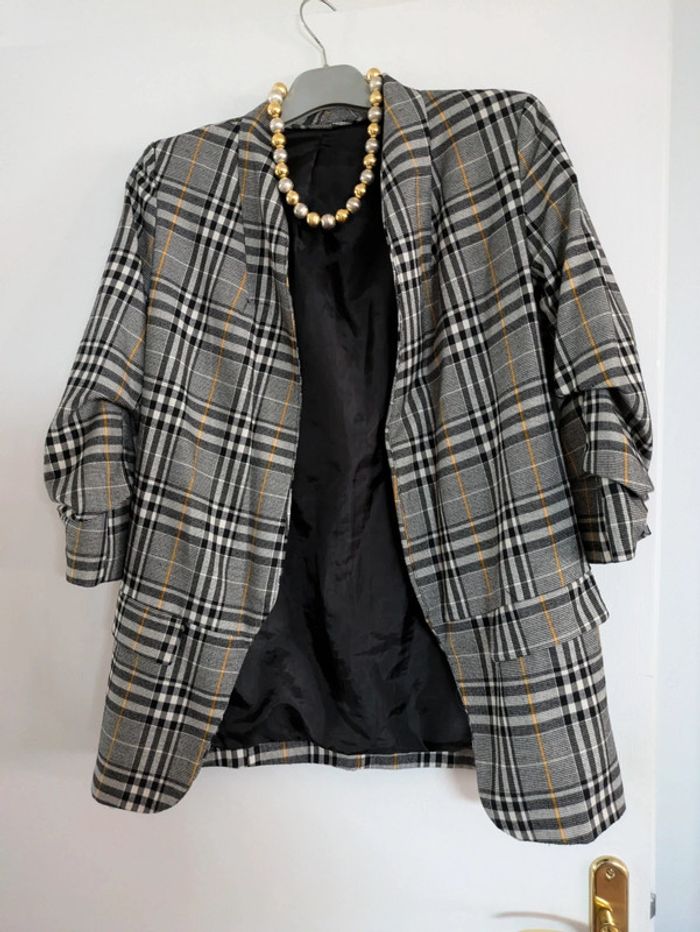 Veste blazer a carreaux manches 3 quarts - photo numéro 1