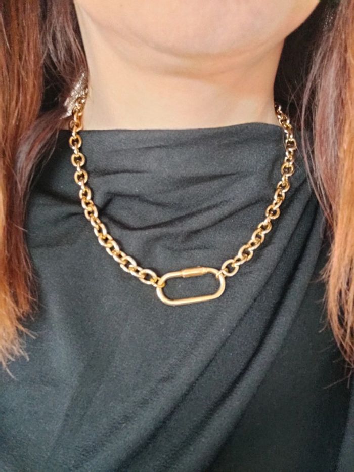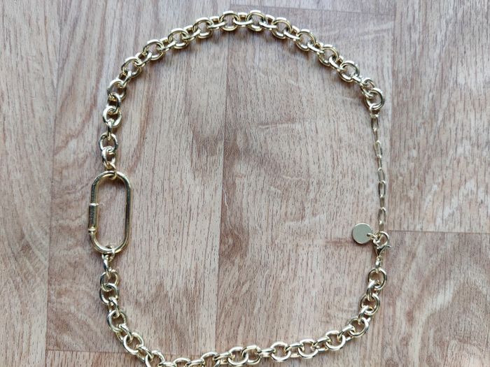 Magnifique collier Bijou en laiton doré à l’or fin 24k Ras de cou Mousqueton Très tendance! Prix d'origine : 55 euros