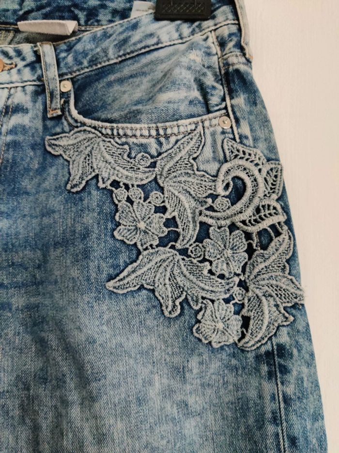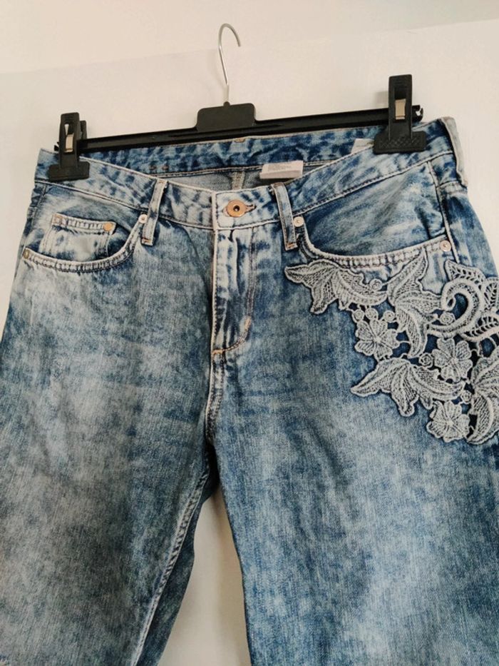 Magnifique jean Forme boyfriend Effet délavé Broderies sur une des poches Déchirure sur un genou ⚠️Je ne fais pas vinted go