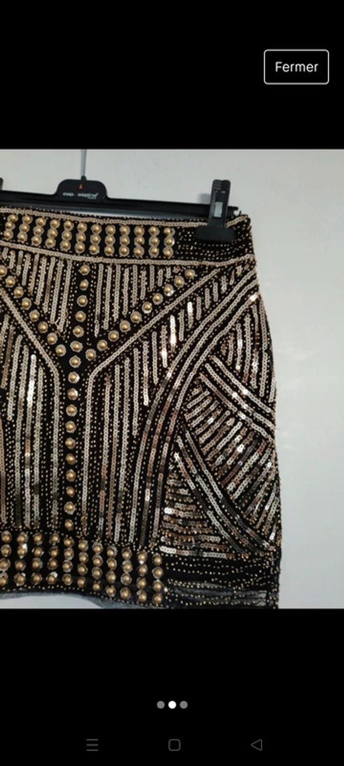 ⚠️je n'utilise pas le mode d'envoi "vinted go" car pas de points relais près de chez moi Magnifique jupe courte Brodée de perles et de sequins Doublure donc je gratte pas Fermeture éclair sur le côté. Taille S/M Parfaite pour les fêtes qui approchent!