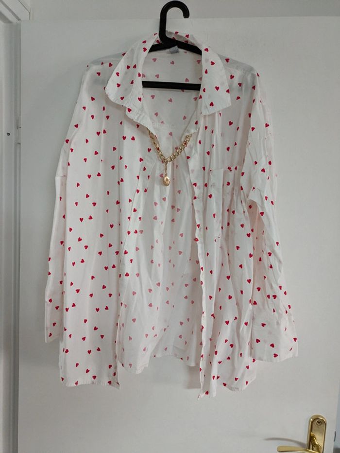 Chemise oversize motif coeur rouge - photo numéro 1