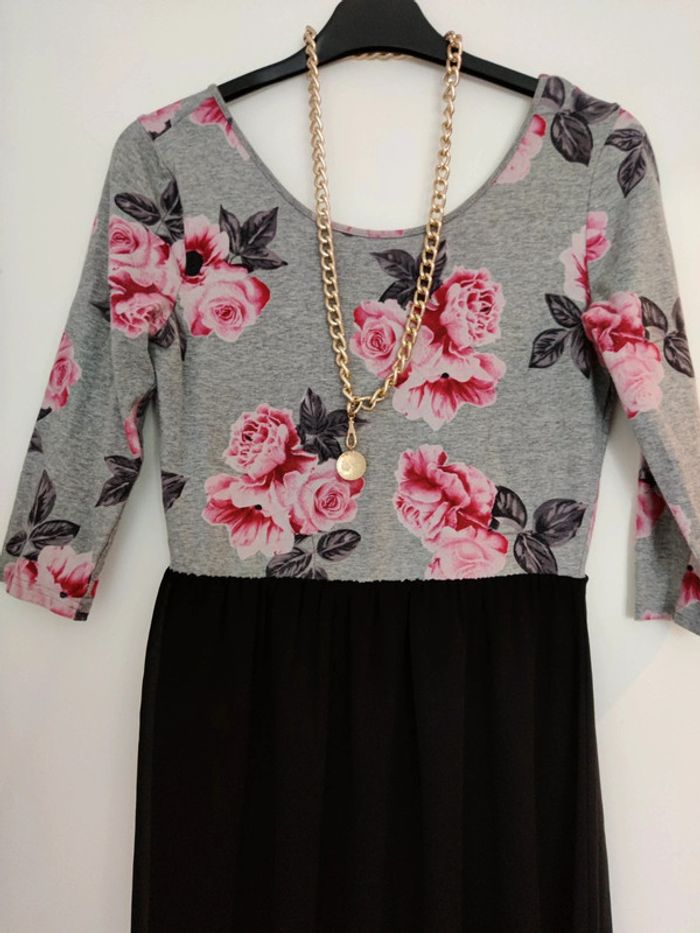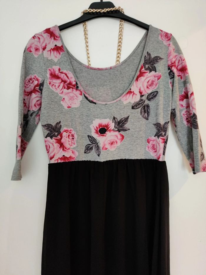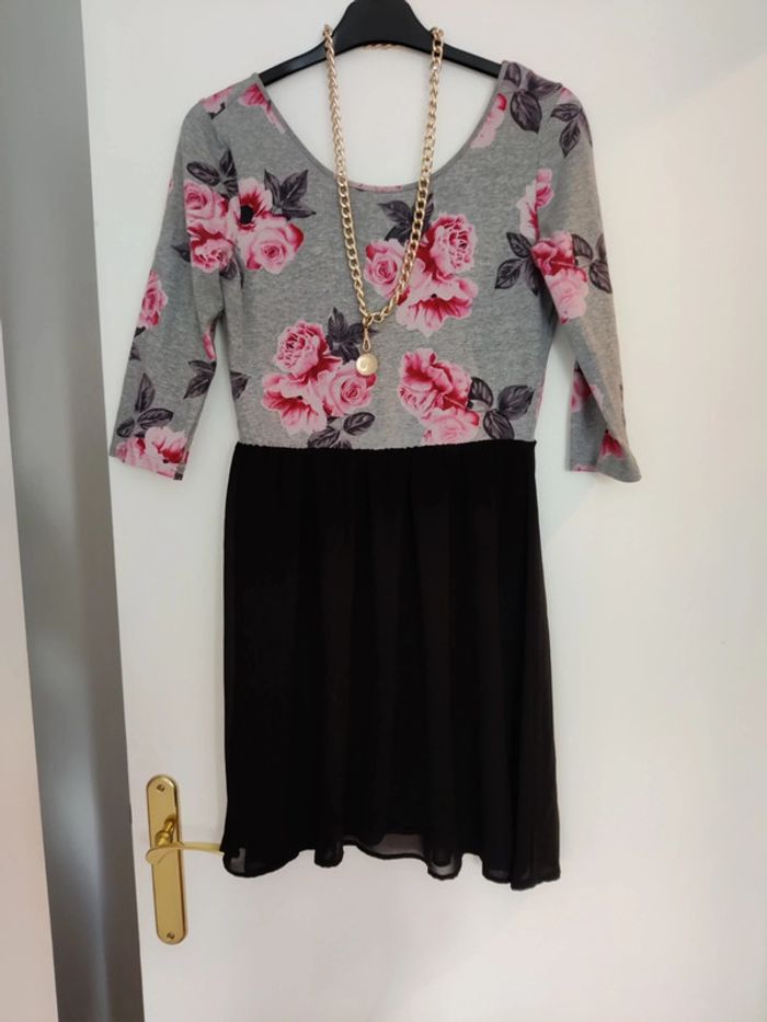 Magnifique robe. Bi matière Jupe voile doublée Haut coton moulant avec décolleté dans le dos. Imprimé floral Demandez pour des photos portées