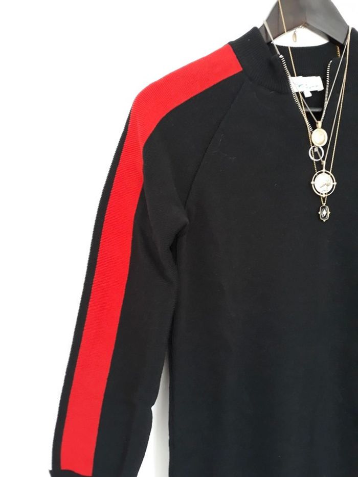 #robepull Magnifique robe pull. Col montant zippé Styme sportswear Manches bandés contrastantes rouge. Bien chaude. Demandez pour des photos portées