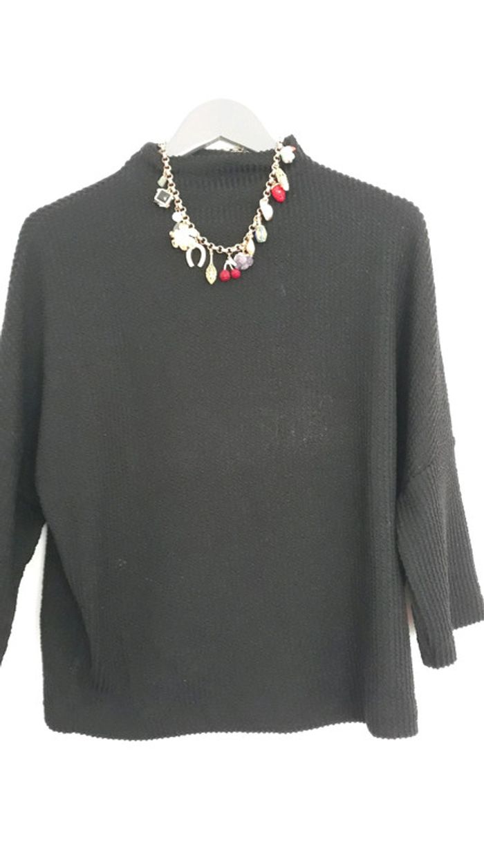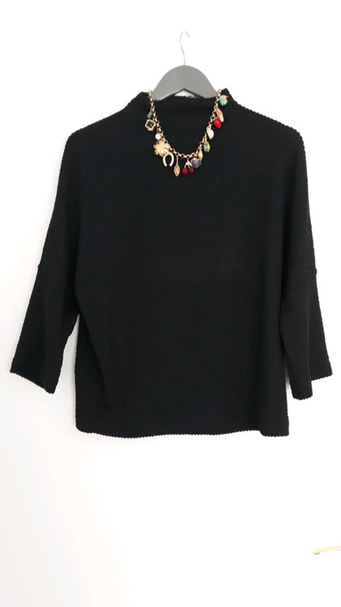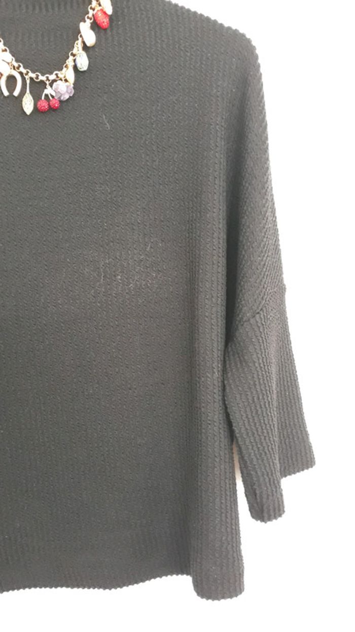 Tres joli sweat léger. Col légèrement montant Manches 3 quart évasées Matière côtelée Demandez pour des photos portées
