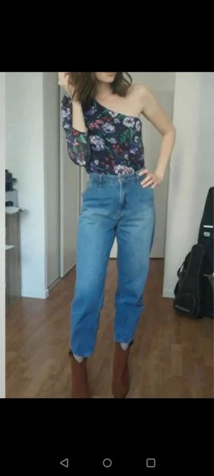 Magnifique jean Forme paper bag Taille haute Couleur jean brut Super tendance!