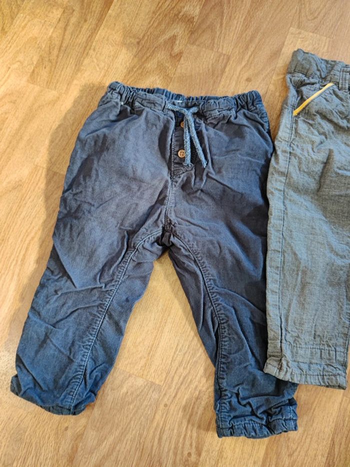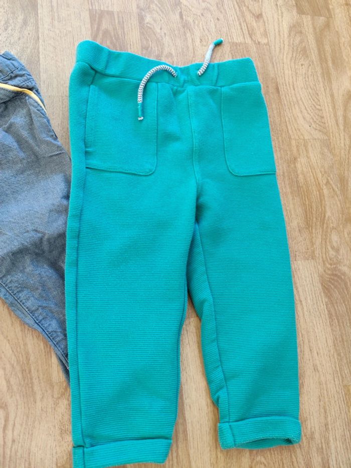 Lot de 3 pantalons 1 pantalon style chino de chez obaibi en taille 18 mois. 1 pantalon matière molleton vert de chez obaibi en taille 23 mois 1 pantalon en velours taille élastique de chez hm en taille 86 cm ⚠️Je ne fais pas vinted go
