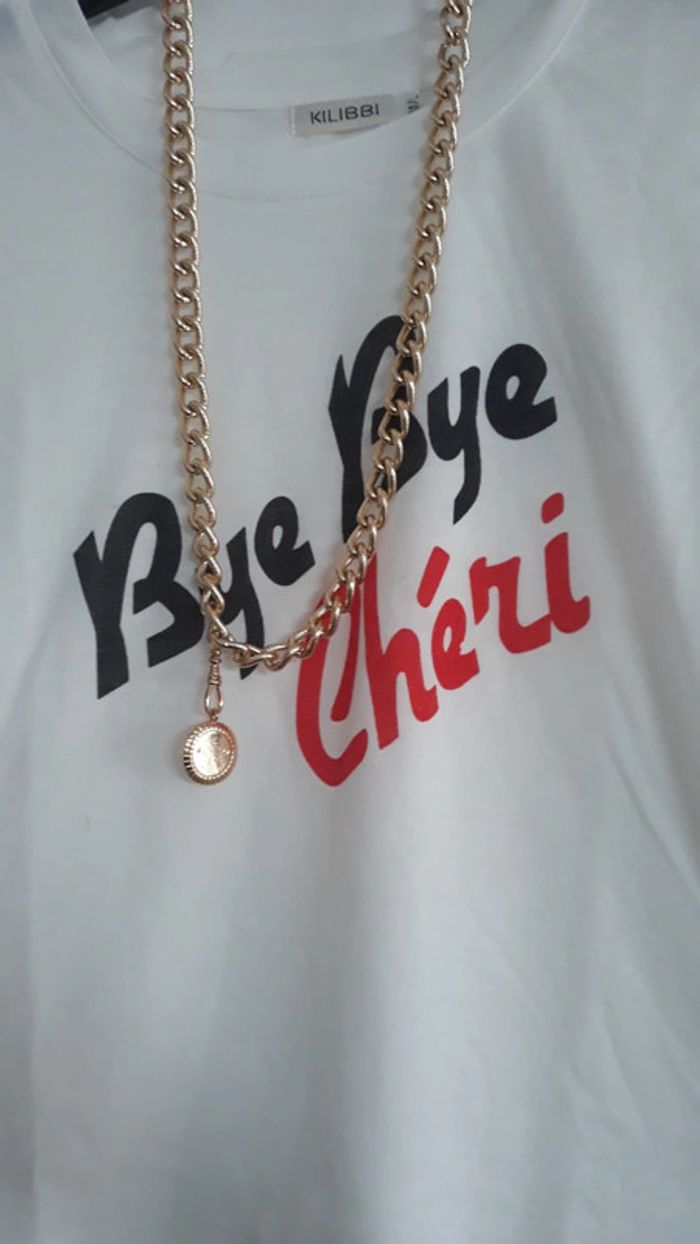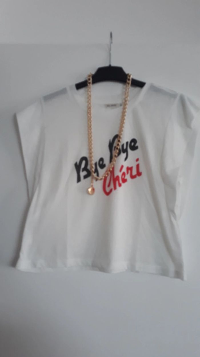 Magnifique t-shirt Emmanchure large Inscription bye bye chérie sur le devant Très tendance Taille ML sur étiquette correspond à 3638 ou 40 Demander pour des photos portées