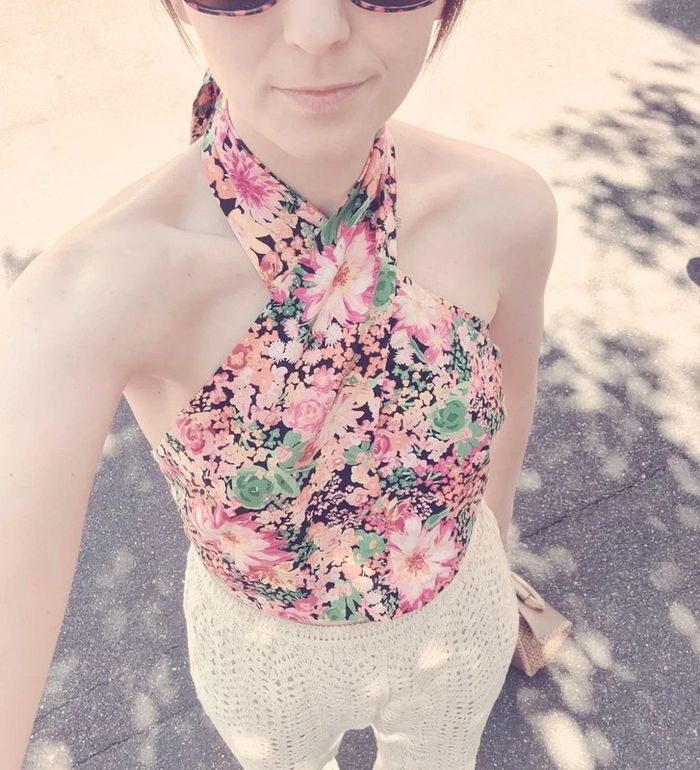 Magnifique crop top Dos nu A nouer autour du coup et dans le dos. Peut être mis de 2 façons différentes Joli imprimé floral Matière lyocell