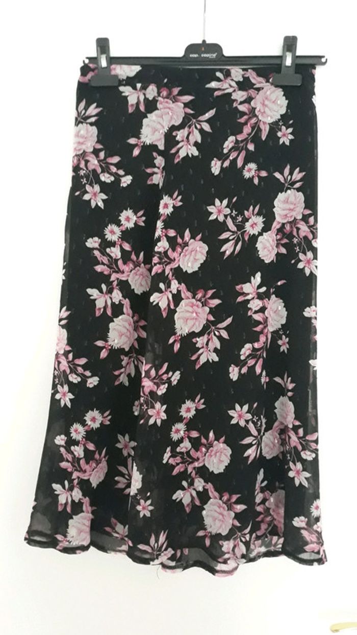Tres jolie jupe longueur midi. Taille haute. Imprimé floral Fermeture éclair Taille 36 sur etiquette mais taille grand donc plutôt taille 38 Demandez pour des photos portées
