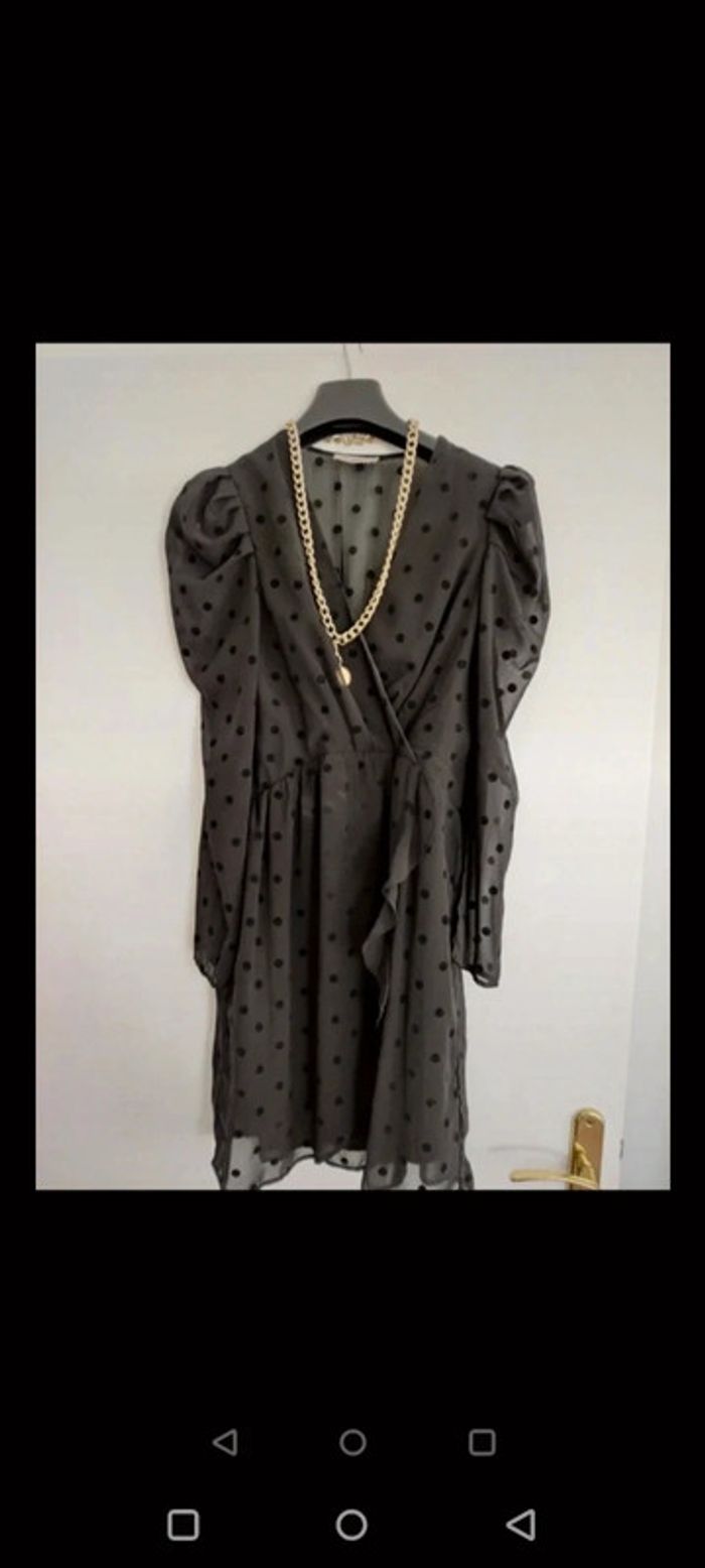 Magnifique robe Matière mousseline avec pois en velours Transparence avec joli décolleté Manches légèrement bouffantes au niveau des épaules Demandez pour des photos portées Taille s/m