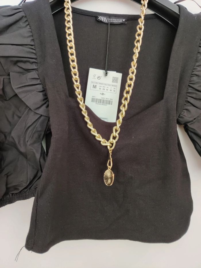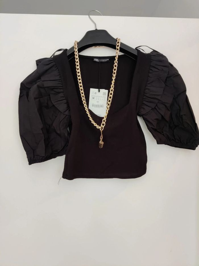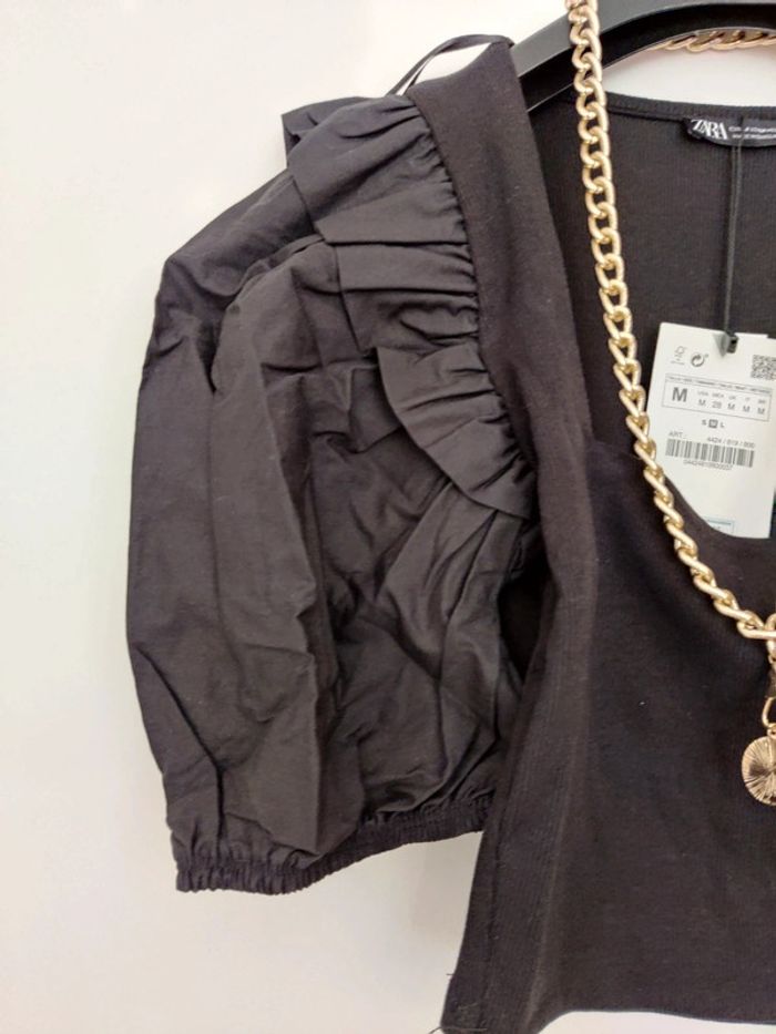 Magnifique top bimatiere Manches bouffantes avec volants Décolleté carré matière côtelée Demandez pour des photos portées