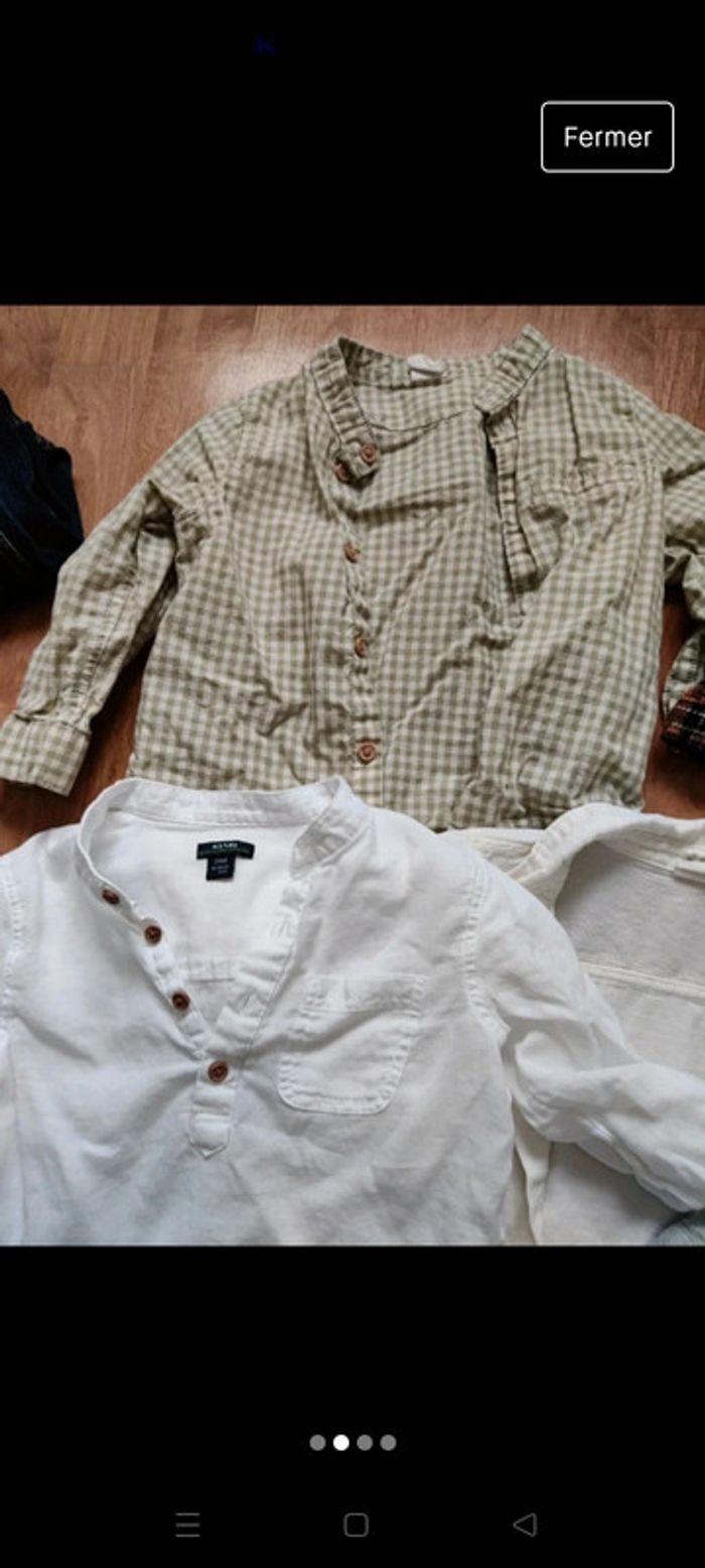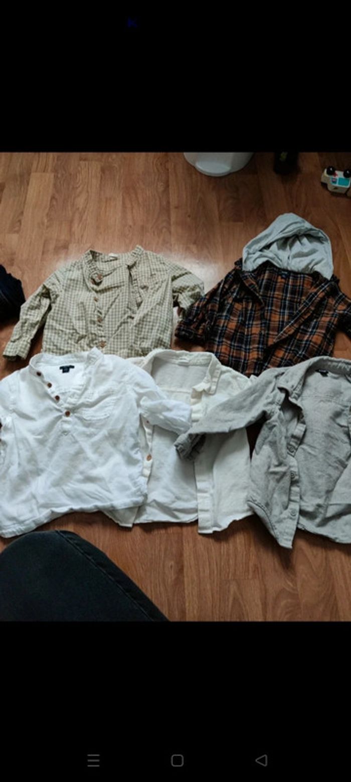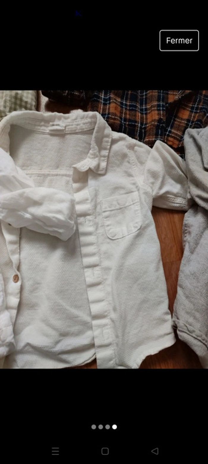 Lot de 5 chemises 1 chemise crème taille 12 mois (80cm) mais taille grand marque h&m 1 chemise col mao blanche taille 24 mois (mais taille petit plutôt 18 mois) marque Kiabi 1 chemise a carreaux vert et blanc taille 18 mois marque h&m 1 chemise grise matière feutrée taille 24 mois (mais taille petite) 1 chemise a carreaux avec capuche taille 18 mois marque kiabi ⚠️Je ne fais pas vinted go
