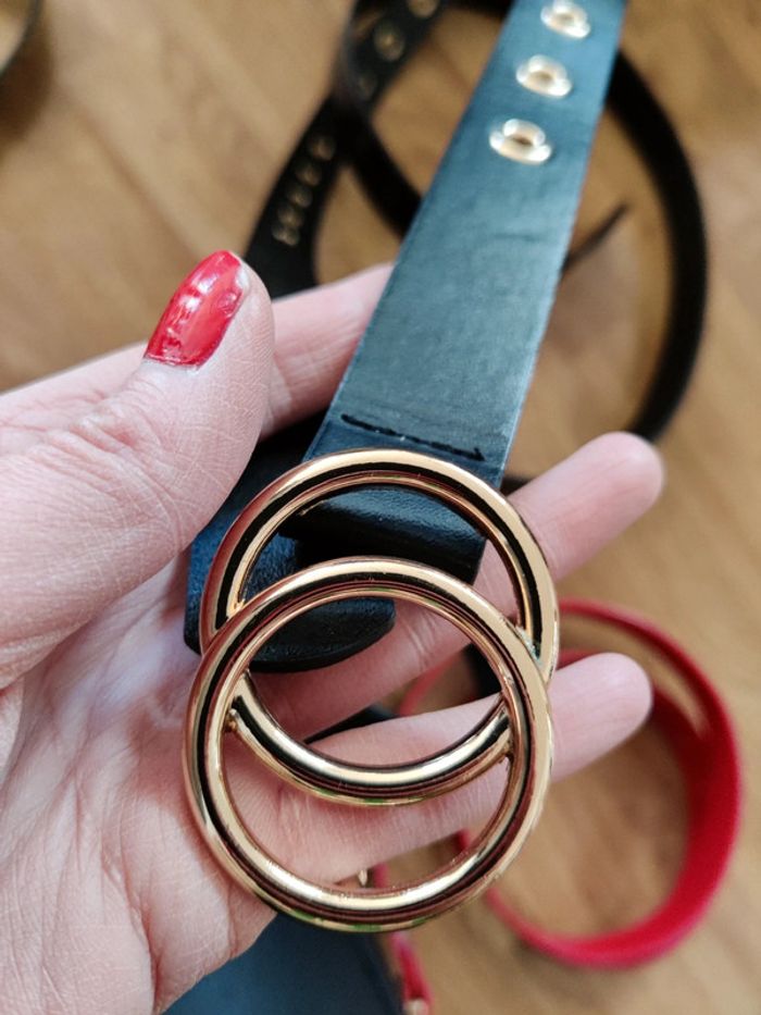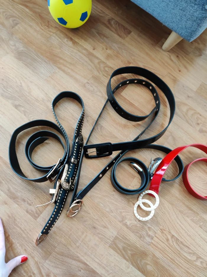 Lot de 5 ceintures Une ceinture rouge avec boucles rondes perles Une ceinture boucle dorée carrée Une ceinture boucle argentée travaillée Une ceinture boucle rectangulaire imprimé crocodile Une ceinture double boucle rondes dorées Possibilité de les vendre séparément N'hésitez pas à demander pour les longueurs et pour des photos portées