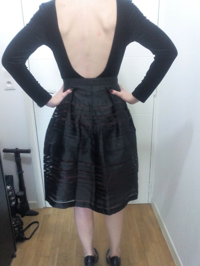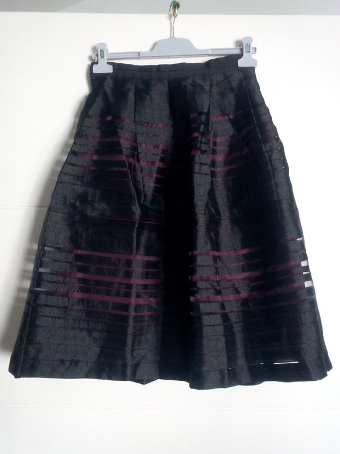 Magnifique jupe bouffante, midi et taille haute. Fermeture éclair dans le dos. Ajourée façon dentelle avec une doublure violette en dessous. Pour une tenue super originale et canon!