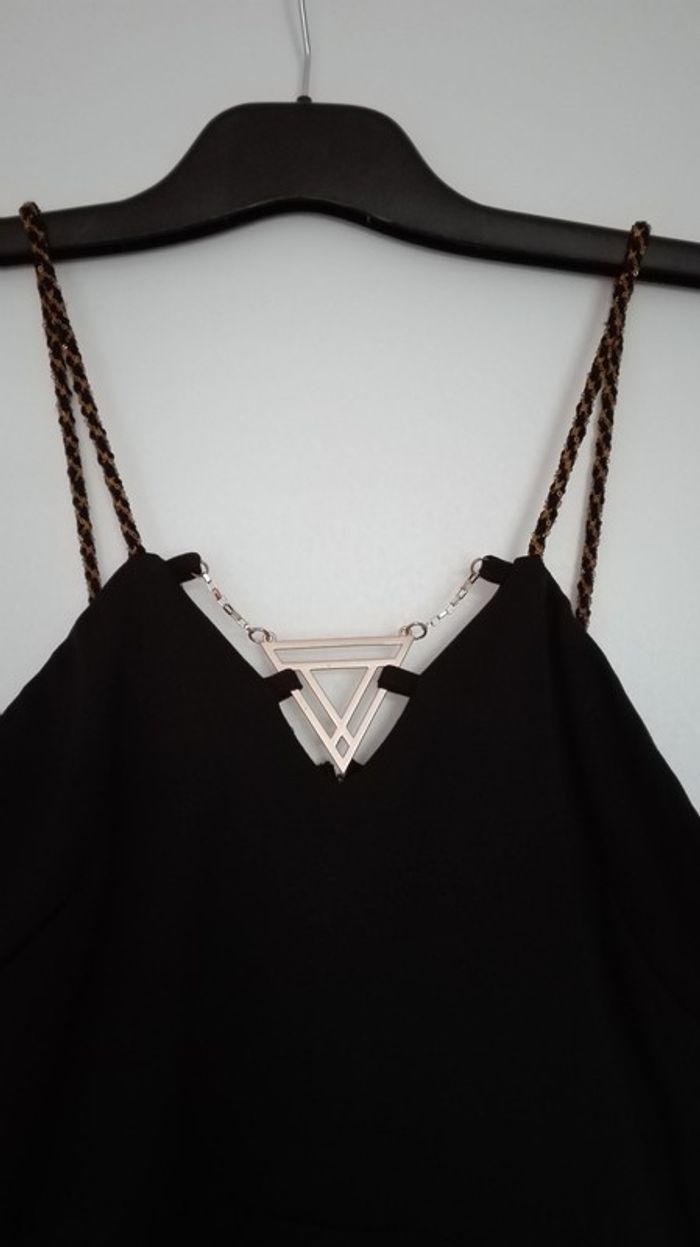 #robedesoirée #fetes #robedesoirée Magnifique robe noire moulante. Bretelles torsadées avec filaments dorés. Décolleté bijou en forme de triangle. Demandez pour des photos portées!