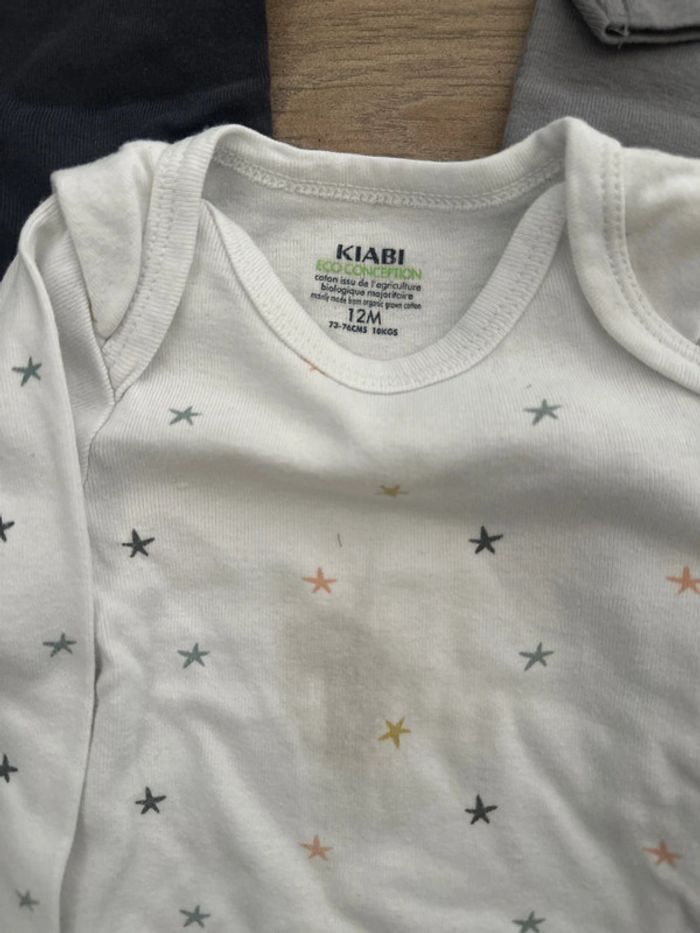 Body 12 mois 2 kiabi 1 orchestra Le body blanc est taché (voir photo)