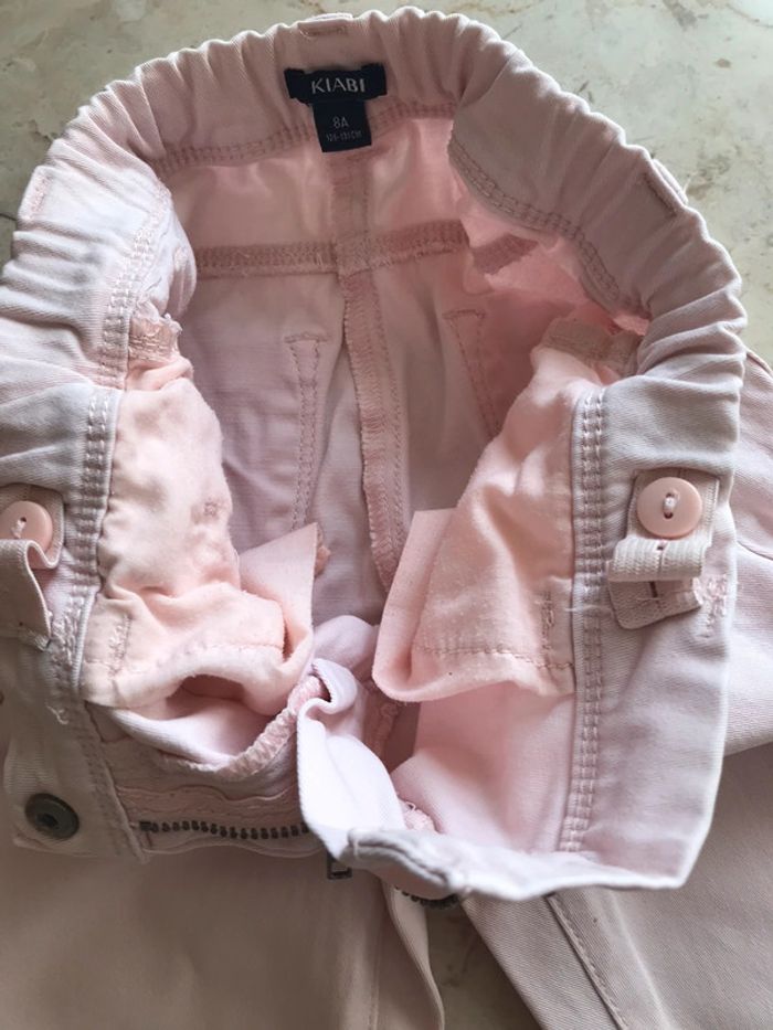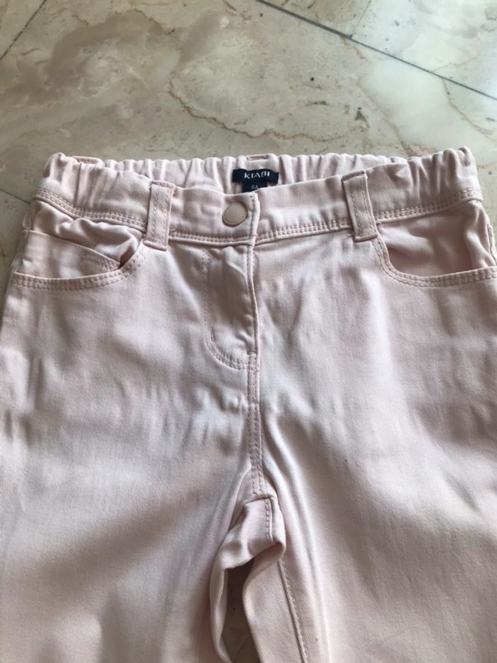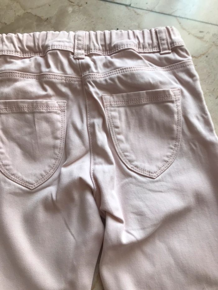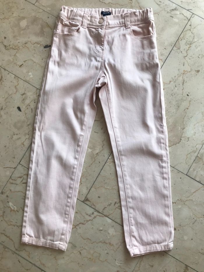 Très joli jean’s rose pâle 2 poches sur le devant et 2 poches plaquées en forme de cœur au dos Réglable a la taille Très bon état Taille : 8 Ans Marque : KIABI