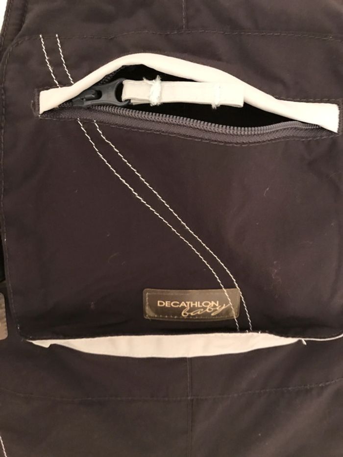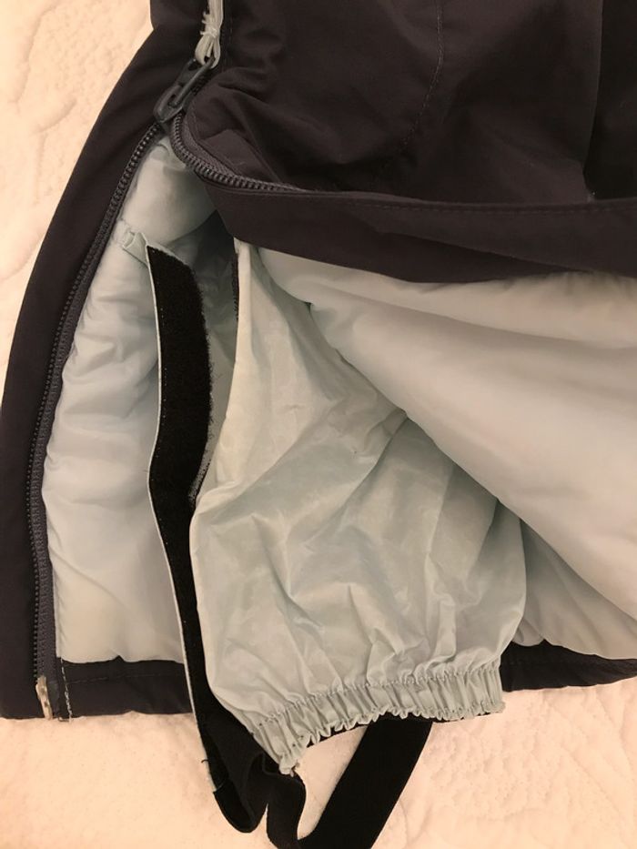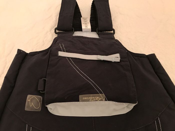 Elle s'enfile facilement grâce à sa grande ouverture Bretelles réglables Guêtres élastiquées pour limiter l'entrée de neige Positionner l’élastique de la guêtre par dessus la bottes de neige. Garnissage 100% Polyester Tissu principal 100% Polyester Doublure 100% Polyester Enduction 100% Polyuréthane Ouate 150 g/m². Buste en polaire. Doublure intégrale maille grattée. Couleur : Marine à l’extérieur et bleu ciel pour l’intérieur Très bon état Taille : 3 Ans Marque : DECATHLON #3ansdavicl