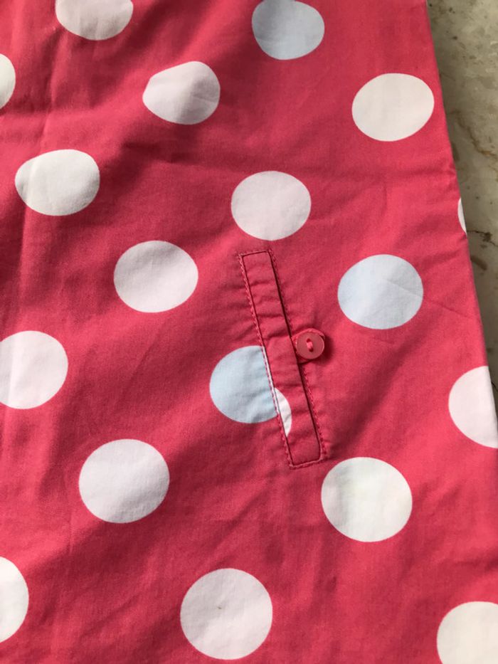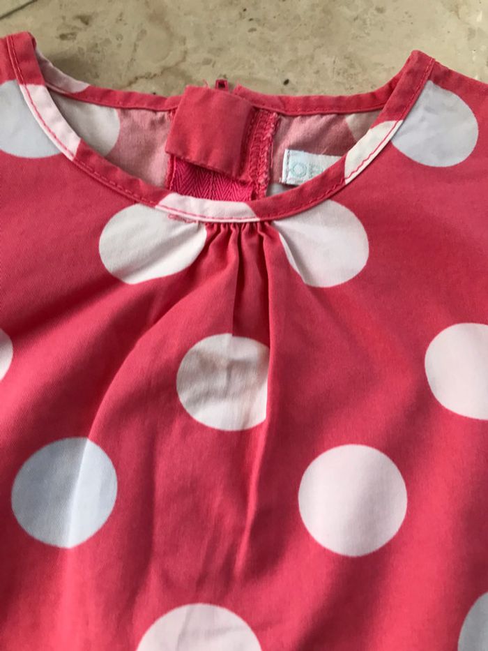 Très jolie robe encolure ronde avec fronces pour plus d’aisance Petites manches avec fronces sur l’épaule Fausses poches fantaisies sur le devant Ouverture dos zippée Très bon état Taille : 18 Mois Marque : OBAIBI €18moisdavicl