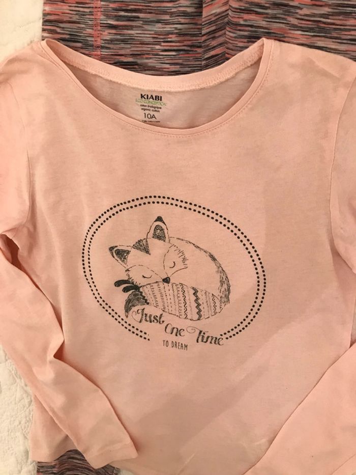 Tee-shirt rose saumon à manches longues Encolure ronde Legging avec découpes rose et élastique à la taille Bon état Taille : 10 Ans Marque : KIABI