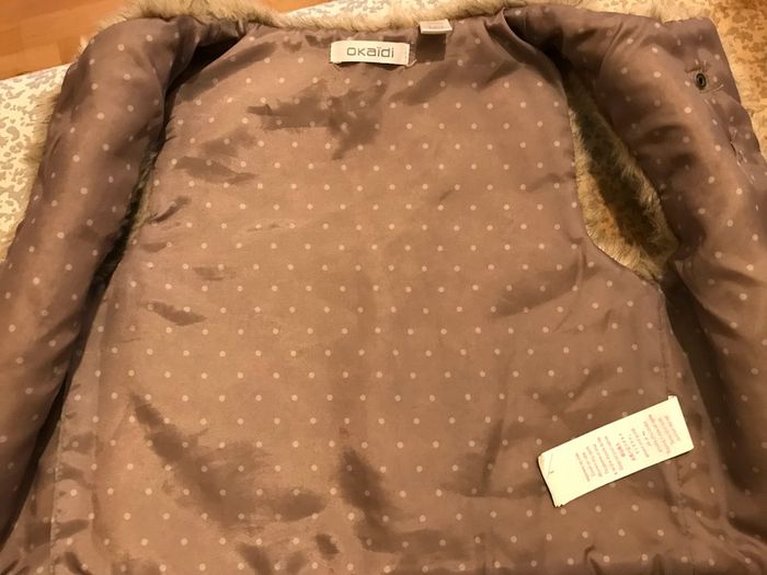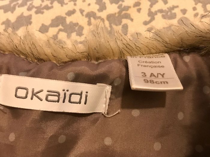 Encolure ronde, fermée par pression invisible. Forme courte. Couleur : taupe clair Matière : Polyester: 20% et 80 % Acrylique Taille : 3 Ans Bon état Marque : OKAIDI #3Ansdavicl