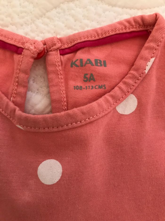 Encolure ronde avec petit niais Ouverture dos avec bouton Petites manches très courtes avec fronces sur l’épaule Matière : 100% coton Âge : 5 Ans Bon état Marque : KIABI #5Ansdavicl