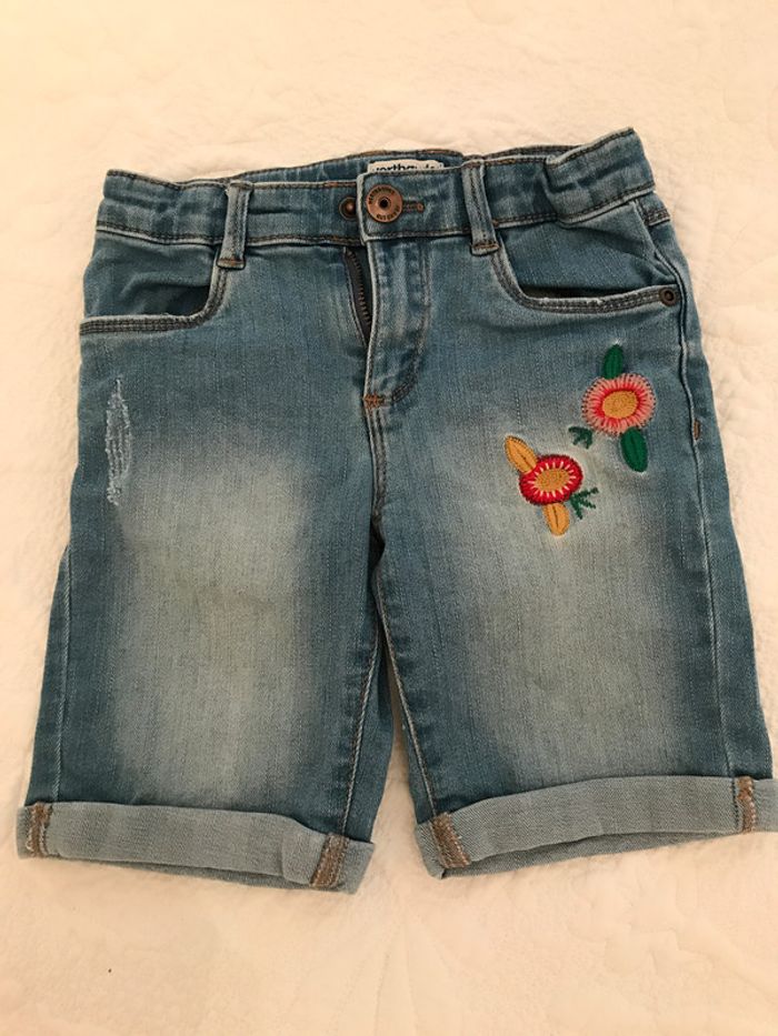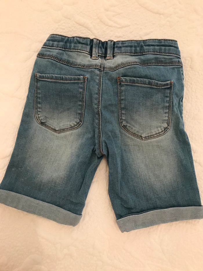 Petit bermuda avec ourlet au bas des jambes Fermeture zippée sur le devant Possibilité d’ajuster la taille par élastique et bouton 2 Poches arrondies devant et 2 poches plaquées au dos Broderie sur la jambe gauche Taille : 5 Ans Bon état Marque : VERT BAUDET