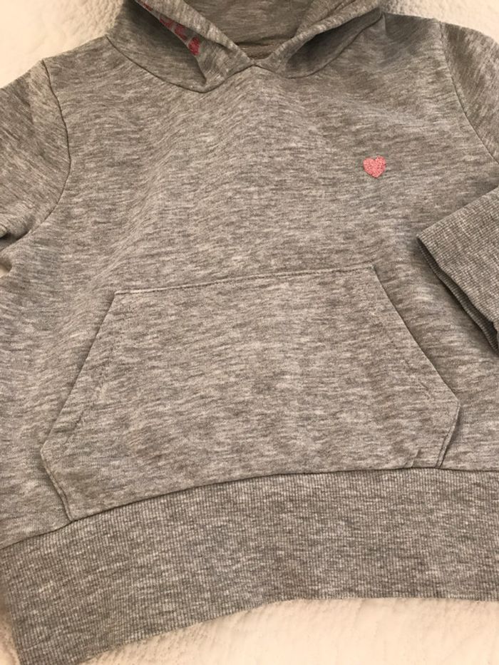 Sweat uni avec juste un petit cœur rose devant Manches longues Doublure capuche en jersey 100 % coton Finition bord côte aux poignets et à la base Age : 6 Ans Bon état Marque : KIABI