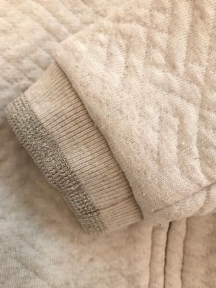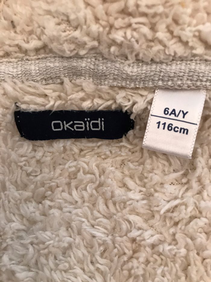 Coupe droite et ouverture zippée Elle possède 2 poches et des manches longues resserrées par bordure côte Doublée moumoute Couleur : beige et brillantée dorée Aspect extérieur matelassé Composition : 68 % coton et 32 % polyester Taille : 6 Ans Bon état Marque : OKAIDI #6ansdavicl