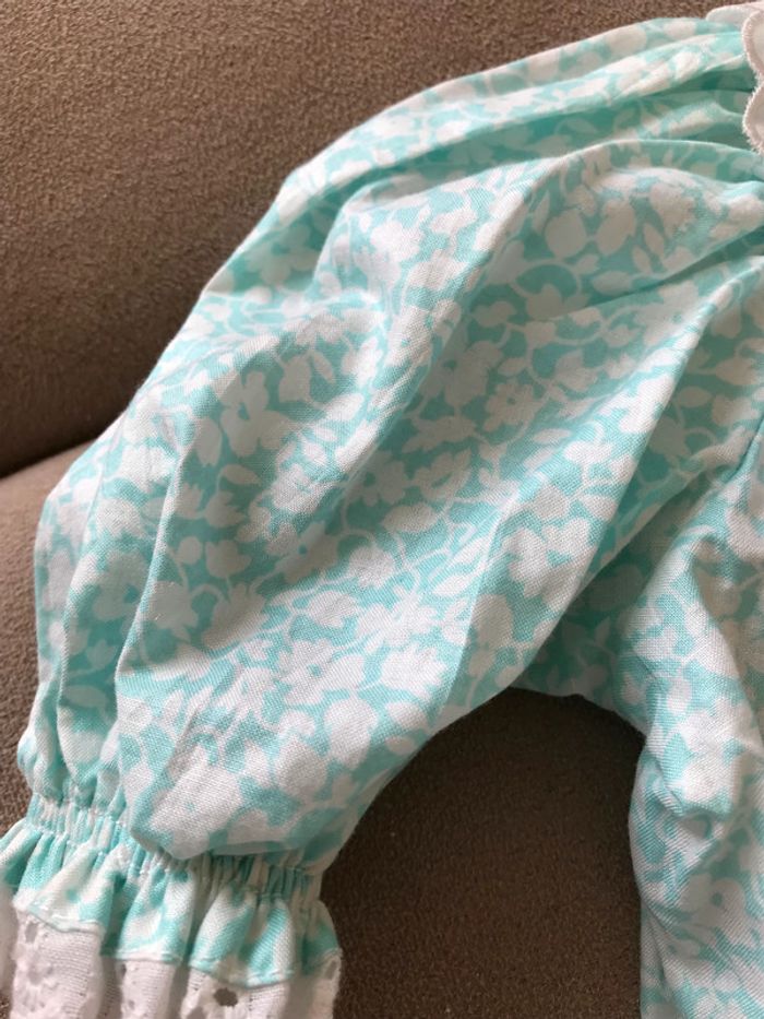 Très jolie robe fleurie verte Jupe terminée par une dentelle au bas Manches ballon Ouverture dos avec scratch Pour grande poupée Corolle Très bon état (comme neuf)