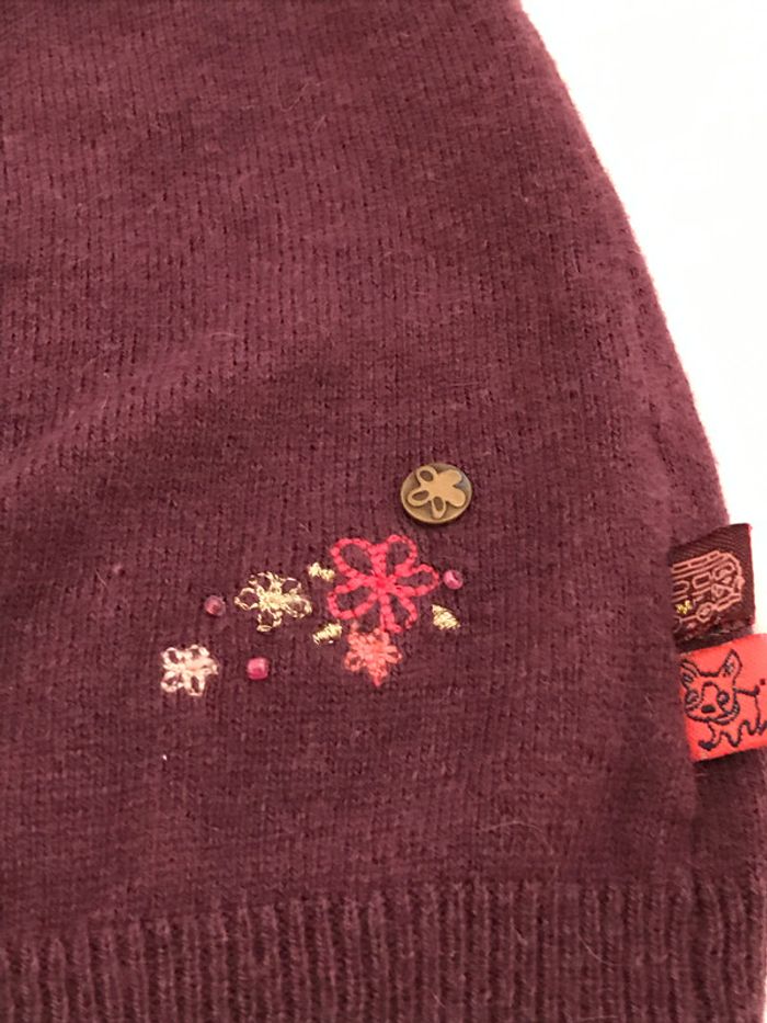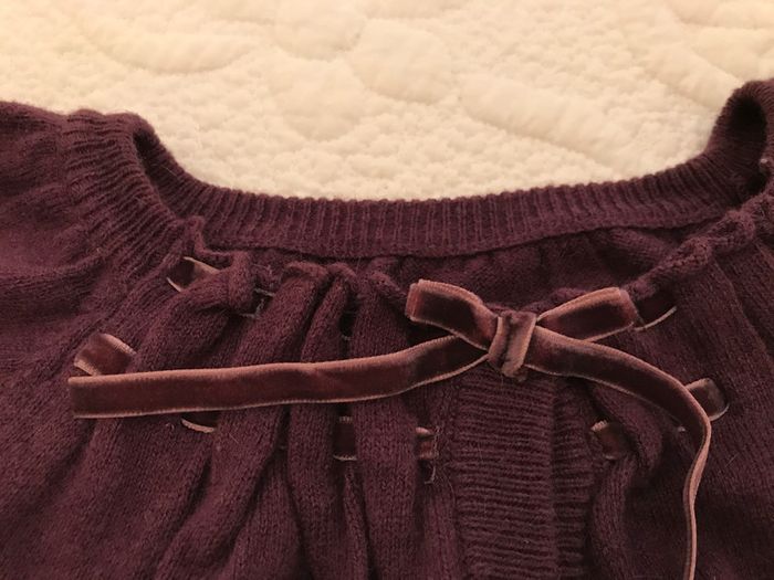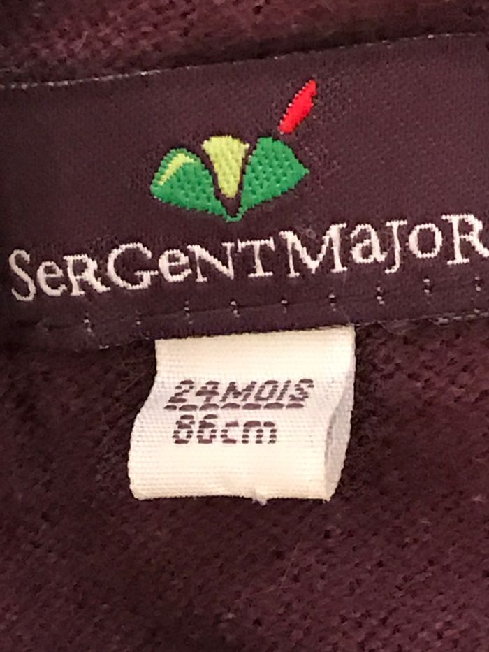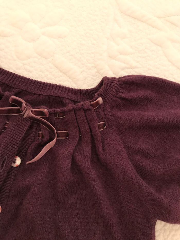 Petit gilet très féminin avec ses manches ballon Avec un peu d’angora c’est un petit gilet très doux et agréable à porter Ruban autour de l’encolure en velours Couleur : Prune Composition : 36 % viscose, 29 % coton, 29 % polyamide et 6 % angora Age : 24 Mois Etat satisfaisant pour le rose et très bon état pour l’autre Marque : SERGENT MAJOR #24Moisdavicl