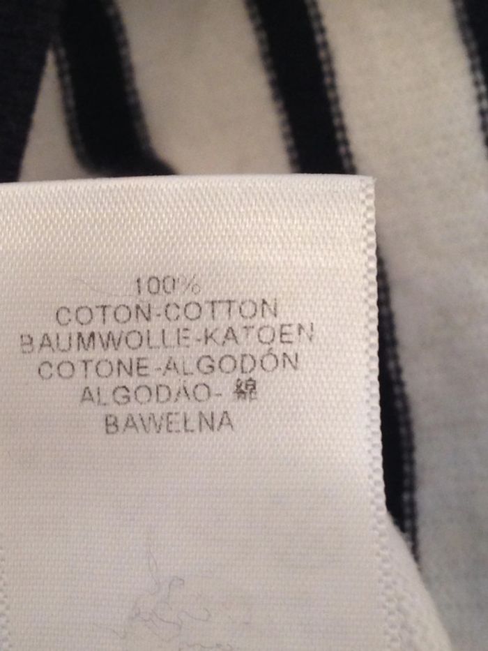 Marinière pour fillette de 4 Ans Encolure bateau bordée d'un biais blanc Ecusson sur le devant à la marque Cette marinière est confectionnée en jersey lourd Matière: 100 % Coton Parfait état #4ansdavicl