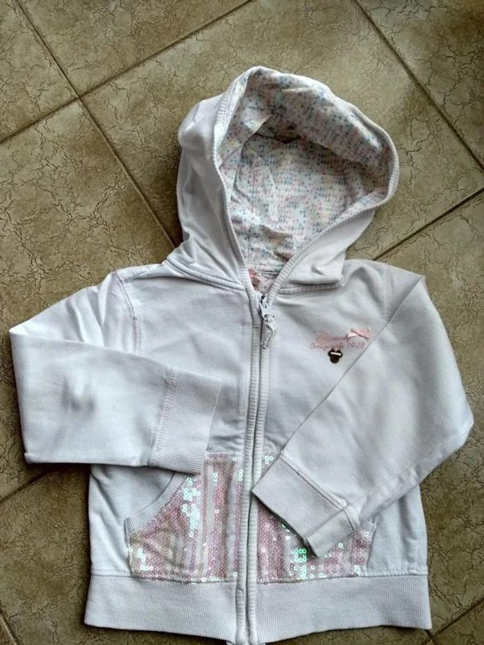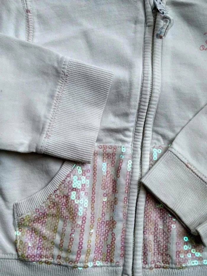 sweat blanc avec paillettes. deux poches devant. taille 2.3 ans. Ni accro, ni tache. La fermeture éclair fonctionne très bien. #3ansdavicl