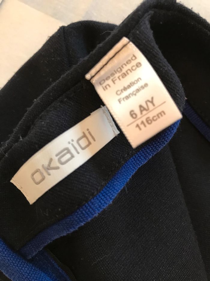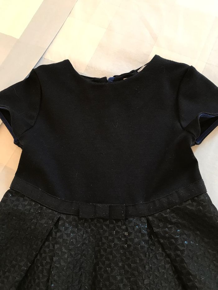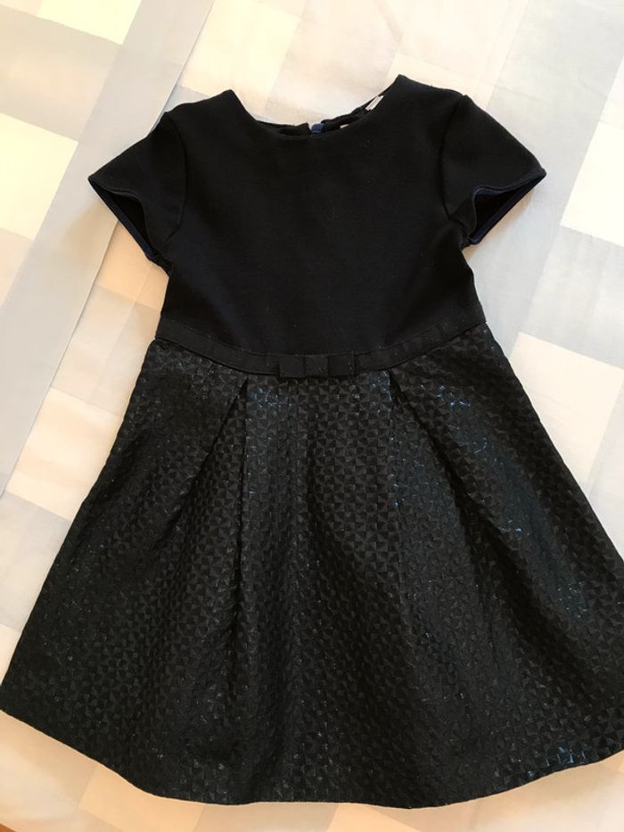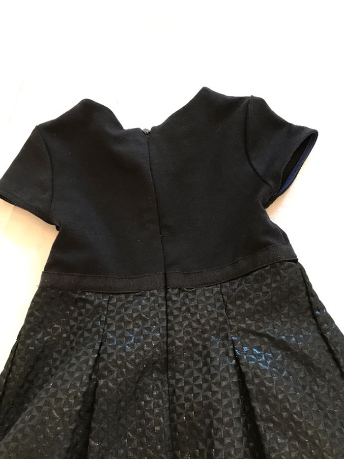 Robe avec haut en jersey et jupe à larges plis en tissu à motifs brillantés Encolure ronde, petites manches courtes Dos zippé sur la hauteur du corsage Composition : 67% polyester, 28 % viscose et 5%élasthanne Très bon état Age : 6 Ans #6ansdavicl Marque : OKAIDI