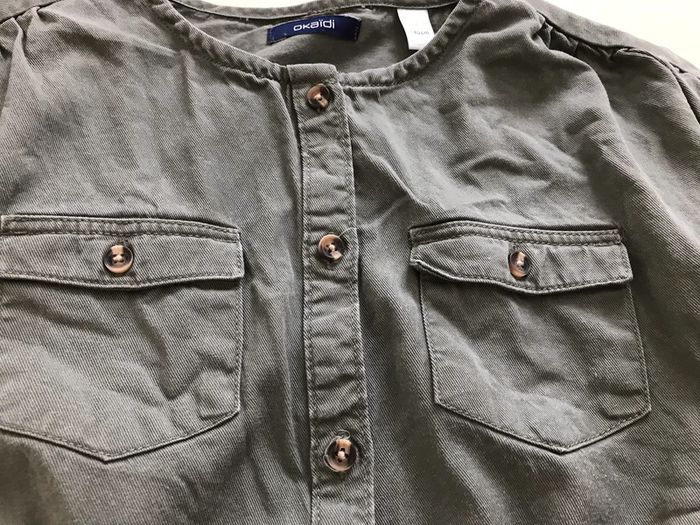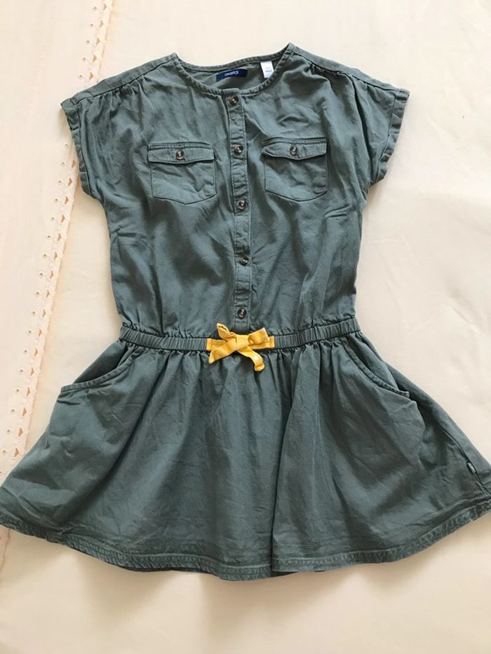 Robe esprit saharienne Petites manches avec revers Boutonnée sur le devant jusqu’à la taille élastiquée Bon état Taille : 10 Ans Marque : OKAIDI