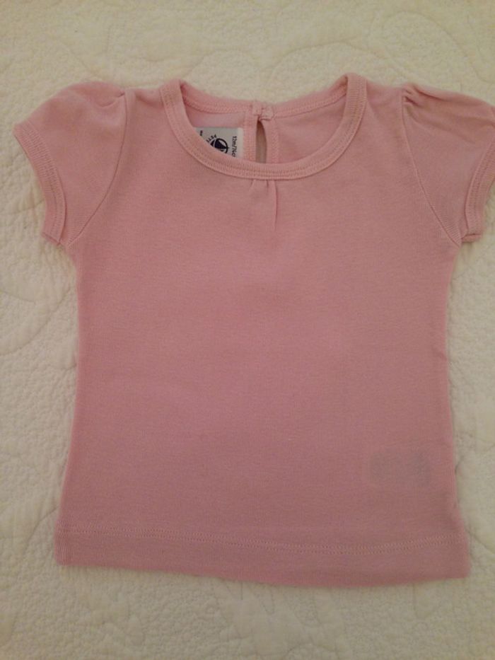Tee-shirt manche courte avec petites fronces sur le dessus Encolure ronde terminée par un biais avec ouverture dos en goutte d'eau et bouton Composition ; 100% coton Très bon état