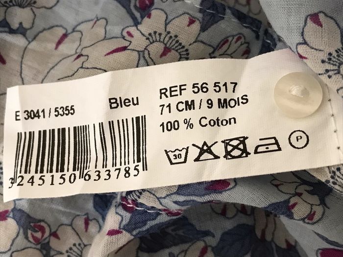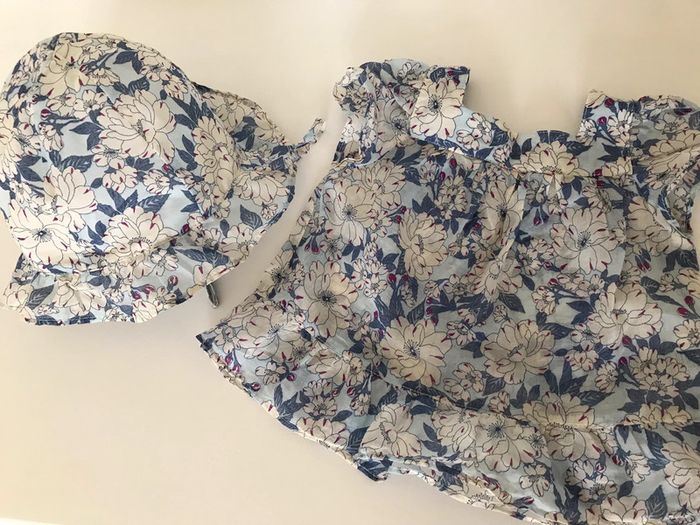 Très joli petit ensemble en voile de coton fleuri Bon état Taille : 9 Mois Marque : BOUT’CHOU