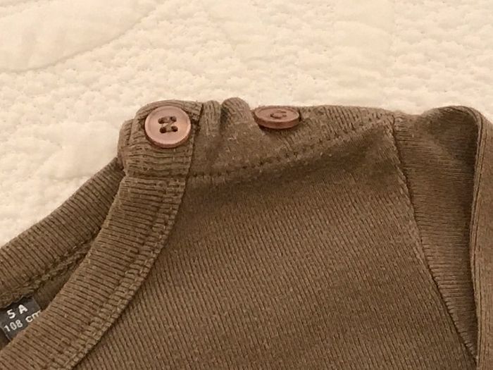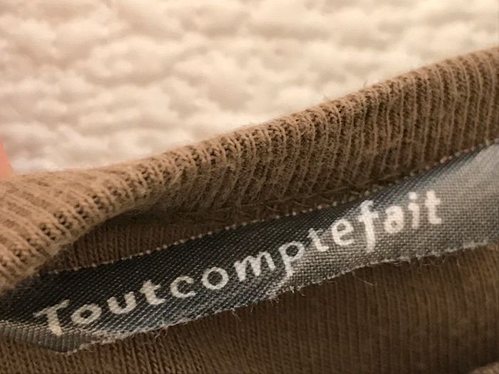 Encolure ronde Ouverture sur l’épaule gauche avec 2 boutons Couleur : Kaki Composition : 100 % coton (jersey épais) Taille : 5 Ans Bon état Marque : TOUT COMPTE FAIT