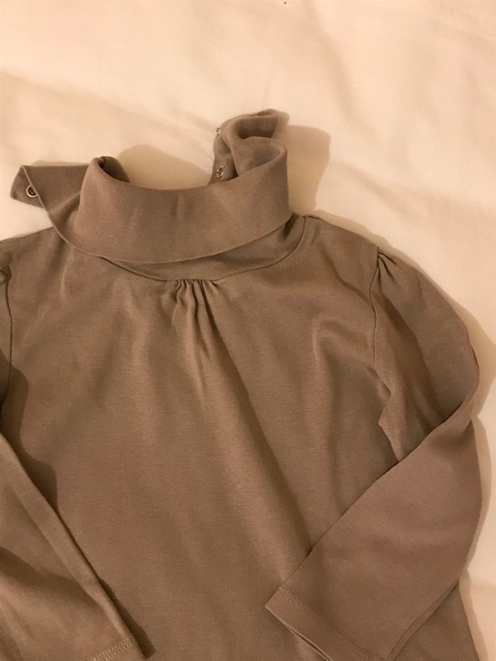 Manches longues légèrement froncées sur l'épaule Col roulé avec petites fronces Ouverture au dos pour faciliter l’habillage (voir photo) Composition : 100 % coton Taille : 3 Ans Très bon état Marque : VERT BAUDET #3ansdavicl