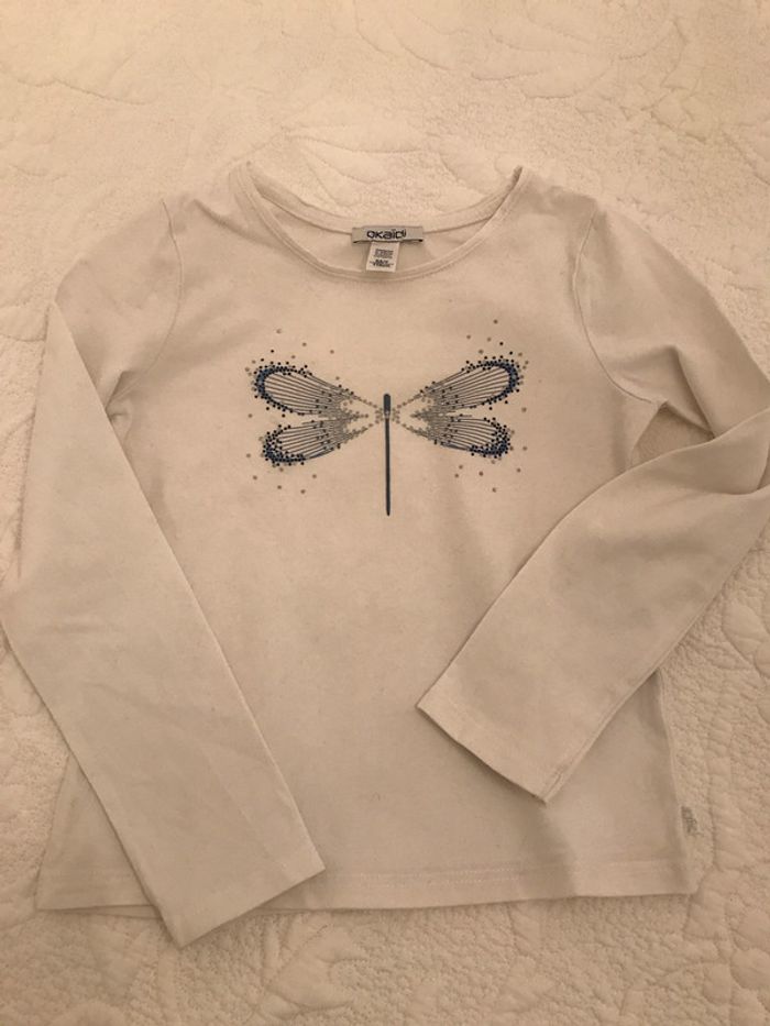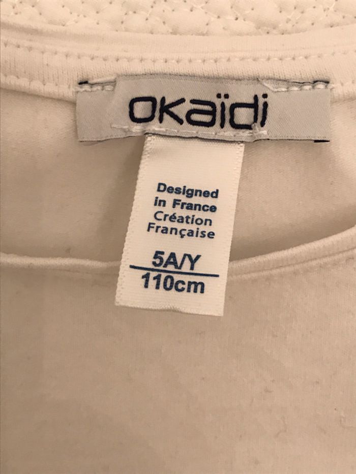 Manches longues et Col rond Coupe droite. Motif sur le devant brillant en dégradé de bleu Composition : 100 % coton Age : 5 Ans Bon état Marque : OKAIDI #5Ansdavicl
