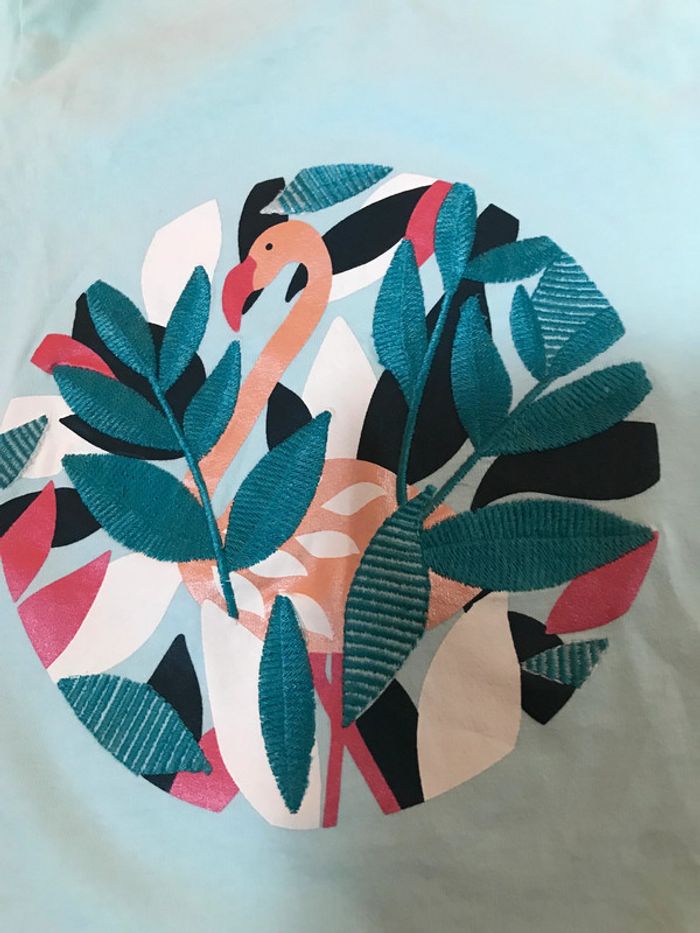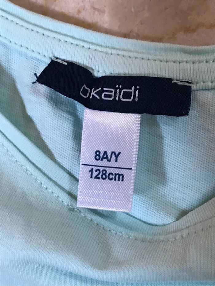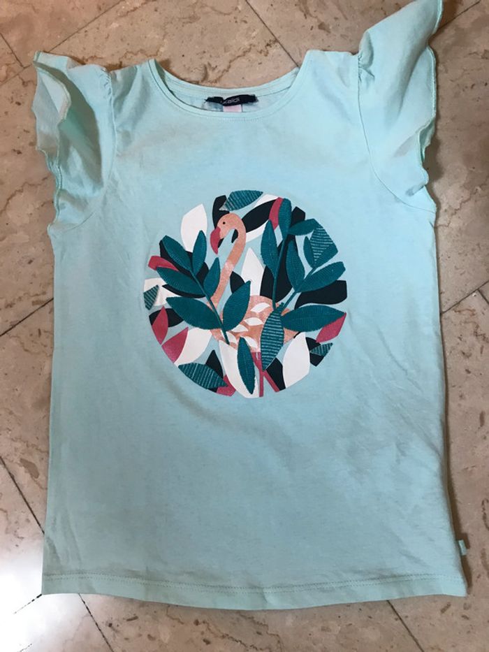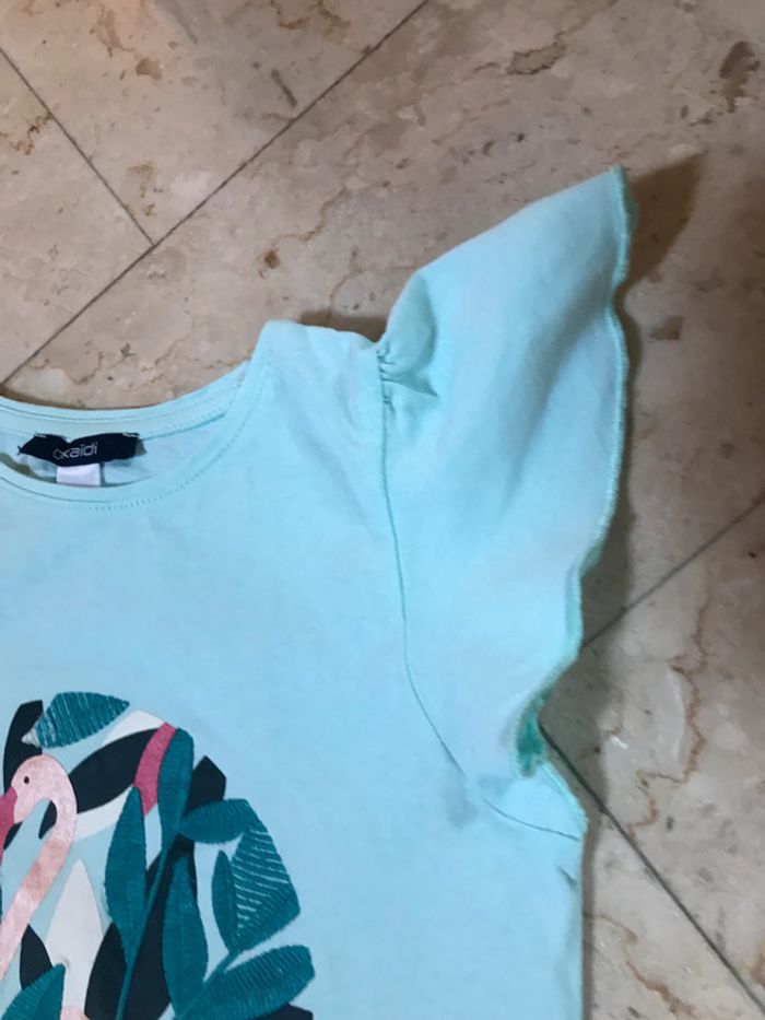 T-shirt turquoise avec dessin brodé Très bon état Taille : 8 Ans Marque : OKAIDI