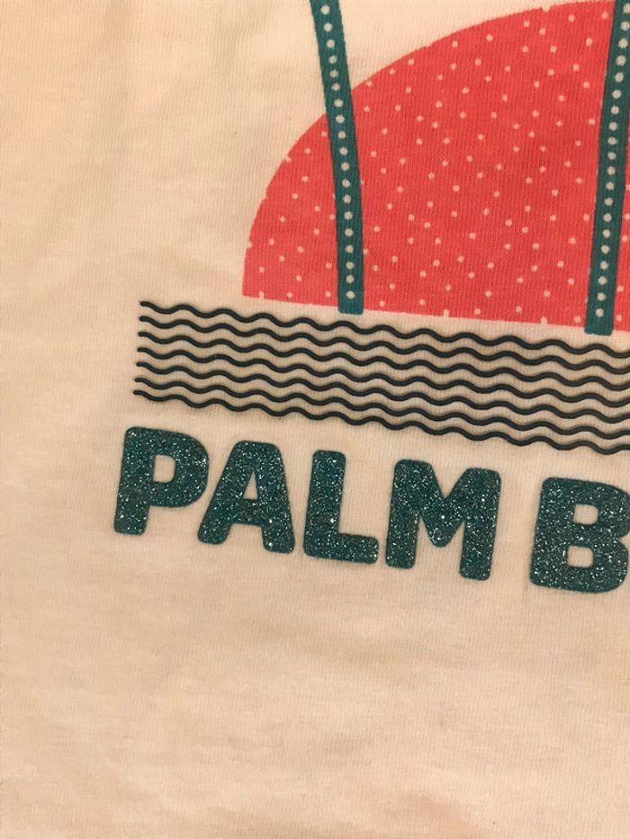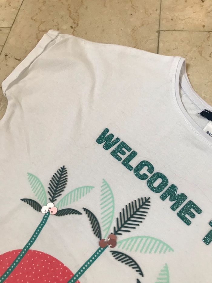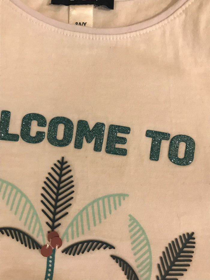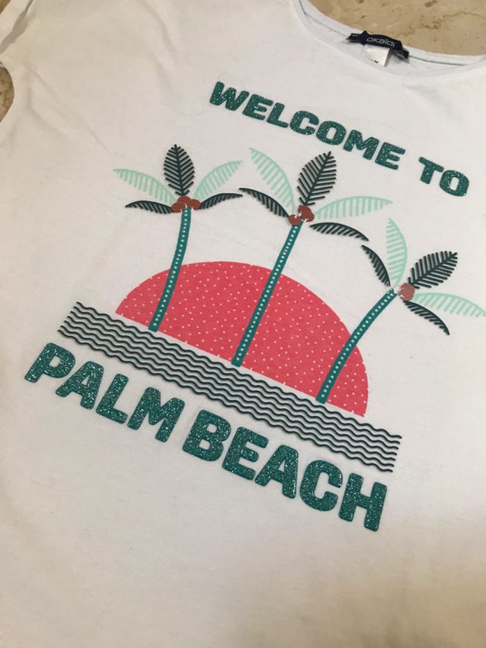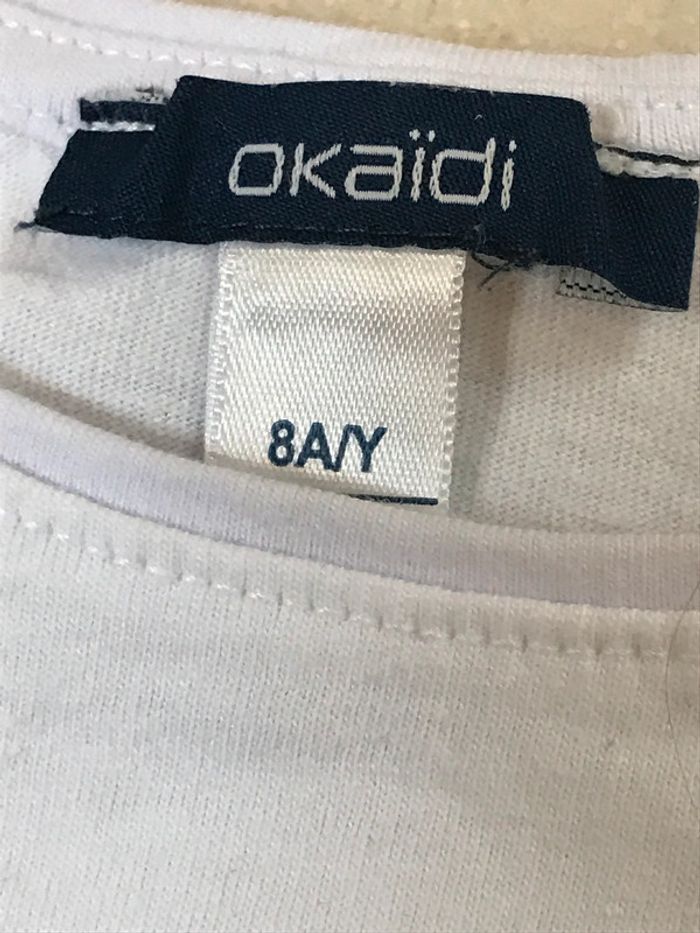 T-shirt blanc avec inscriptions brillantées Très bon état Taille : 8 Ans Marque : OKAIDI