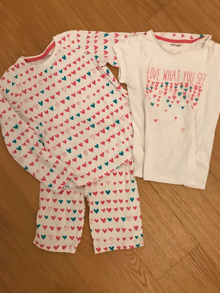 Pyjama léger blanc à coeurs rose et bleu - photo numéro 1