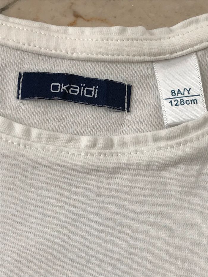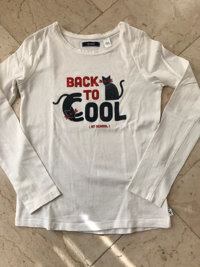 Teeshirt à manches longues Encolure arrondie Jolie impression brillantée sur le devant Très bon état Taille : 8 Ans Marque : OKAIDI