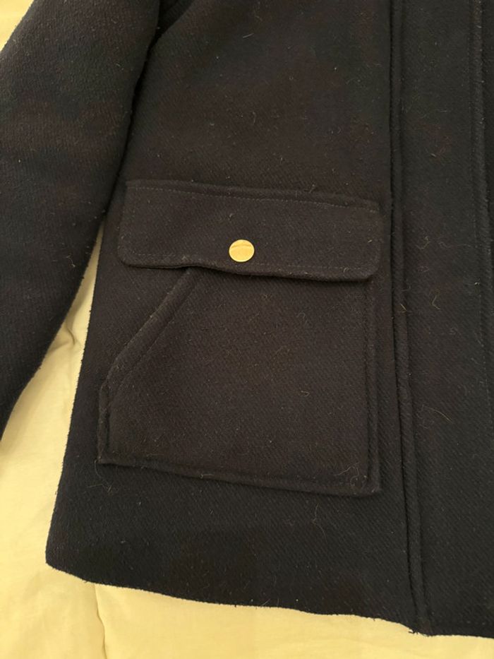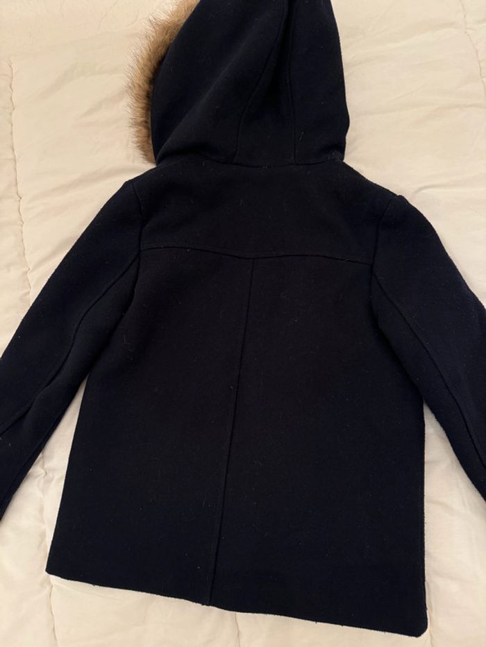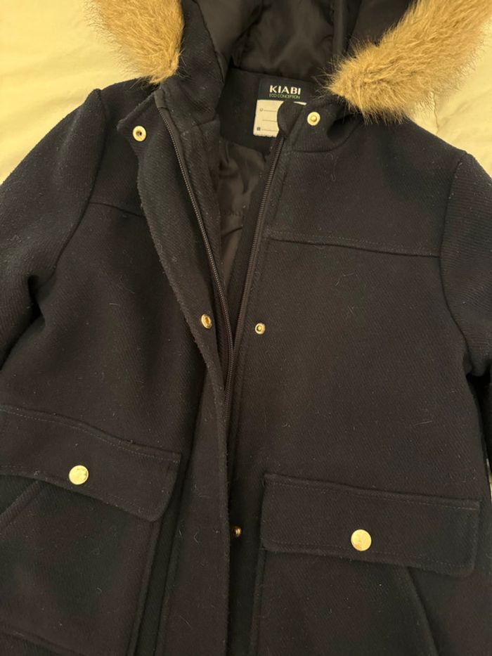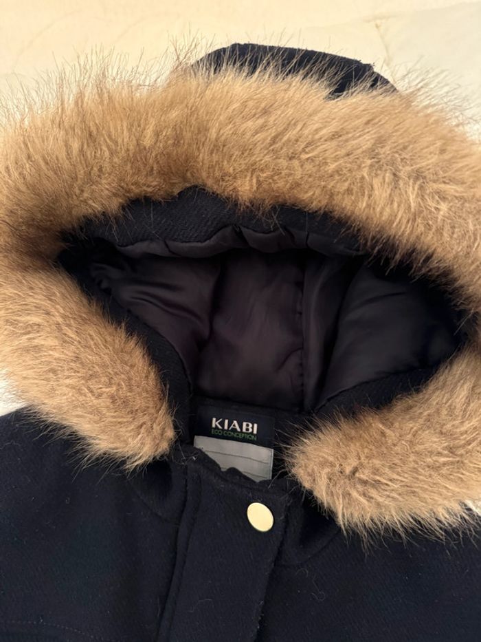 Manteau à capuche façon lainage avec fausse fourrure Double fermeture : fermeture zippée et pression 2 poches plaquées devant Couleur : Marine Age : 10 Ans Bon état Marque : KIABI